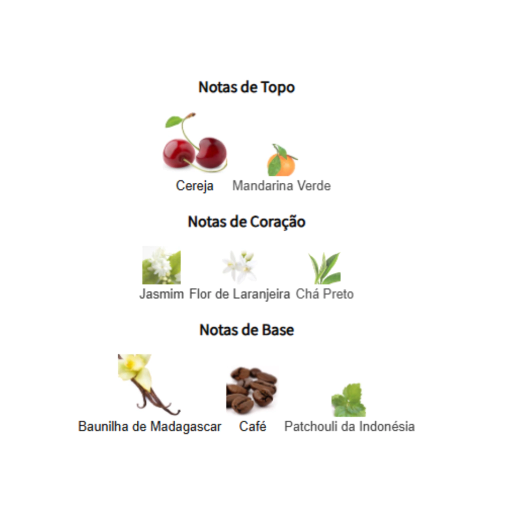 Notas de base: Baunilha de Madagascar, Café, Folha de Patchouli da Indonésia