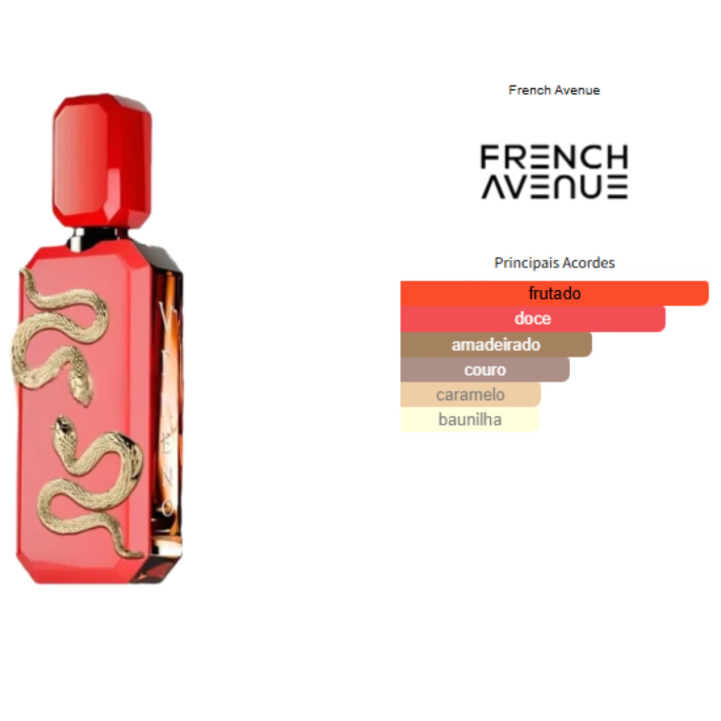 Veneno Scarlet de French Avenue é um perfume Compartilhável. Esta é uma nova fragrância. Veneno Scarlet foi lançada em 2025. As notas de topo são: Morango, Amora e Caramelo. As notas de coração são: Framboesa, Cedro e Canela. As notas de fundo são: Couro, Caramelo, Baunilha, Patchouli, Abeto e Fava Tonka.